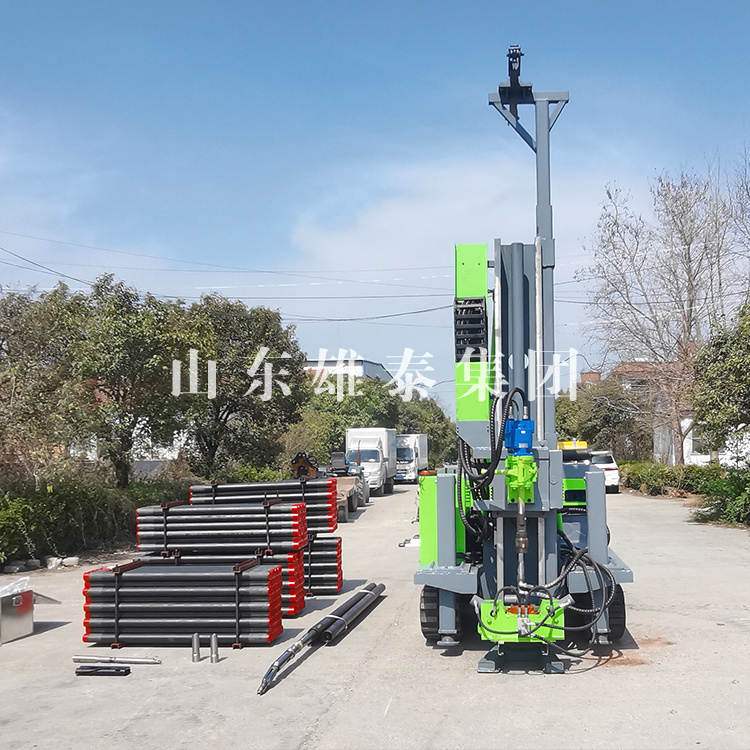 山東雄泰機(jī)械集團(tuán)自主研發(fā)生產(chǎn)的履帶式全液壓巖心鉆機(jī),我廠(chǎng)技術(shù)人員在現(xiàn)場(chǎng)售后指導(dǎo)施工中。