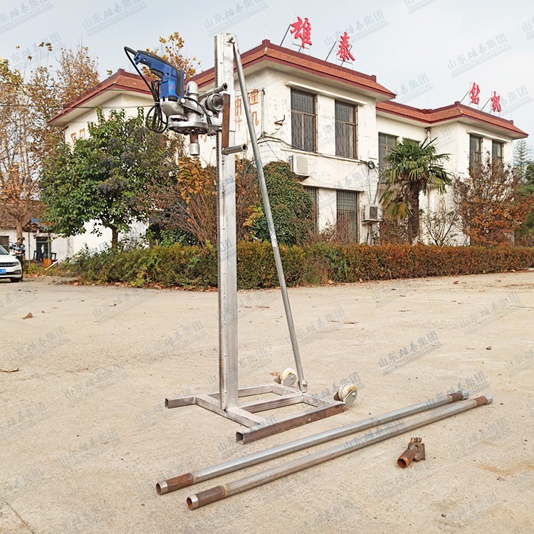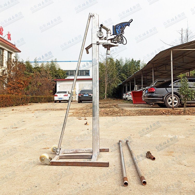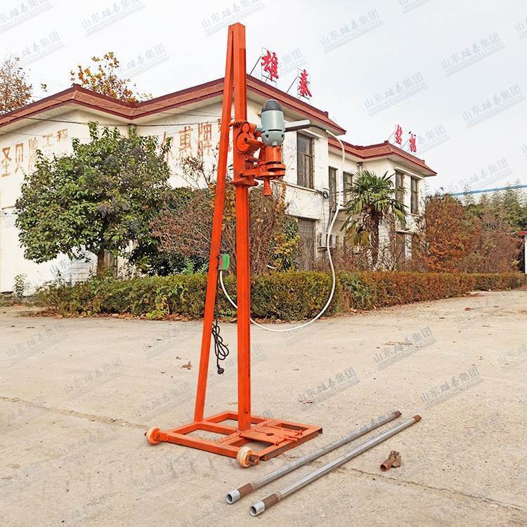 本款打井機采用了多齒輪設(shè)計,雖然增加了生產(chǎn)成本和制造工藝,但這樣設(shè)計增加了打井機力量(就像汽車一檔比四檔有力、還便于掌握一樣的道理),打井有力,打井速度快、便于掌握。如果齒輪少了,一千瓦的電機還沒有七百多瓦的電機力量大、而且轉(zhuǎn)速高、打井時難于掌握。這款多齒輪結(jié)構(gòu)鉆井機經(jīng)過許多用戶多年使用,打井效果非常理想!便攜式小型民用電動打井機廣泛應(yīng)用于家庭/工廠生活用水打井、農(nóng)田灌溉水井、安裝水空調(diào)、工地打樁等。本公司生產(chǎn)的便攜式小型民用電動打井機機頭,可隨意選配鉆頭,鉆頭價格另算。也可另配鉆桿,鉆桿直徑是32mm、一根長約1.5米。